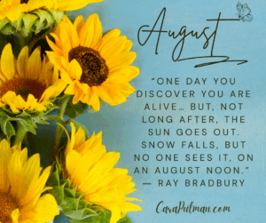 There’s something about the middle of August. It’s a time of bouquets of sharpened pencils and kids starting school. The temperatures are still blisteringly hot here in Indiana, but my kids started school this week. I have a senior and a sophomore in high school. And my recent college grad moved over the weekend and started his grown-up job after milking every moment out of his last summer.