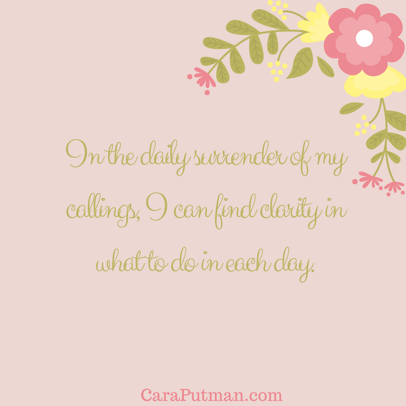 …In the daily surrender of my callings, I can find clarity in what to do in each day. Matthew 7:7