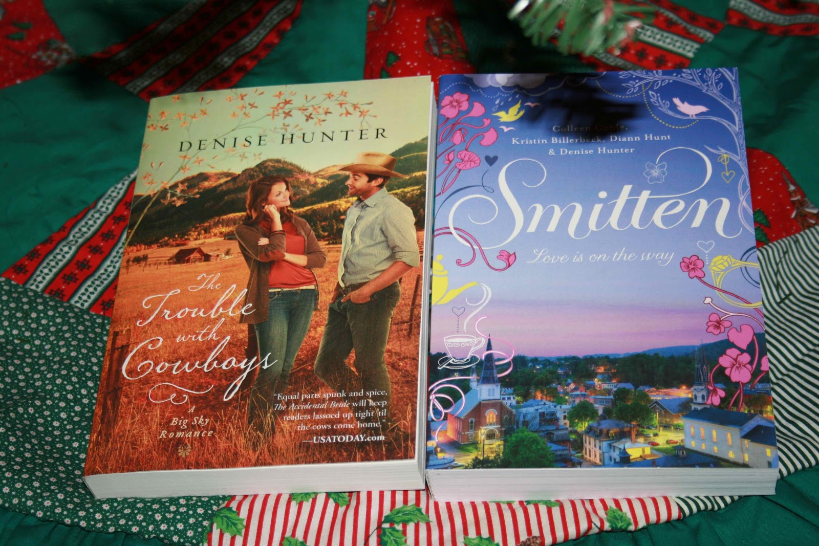 Today, I’m bringing you two great books. The first is The Trouble with Cowboys by one of my favorite contemporary romance writers Denise Hunter. The second is Smitten, a novella collection by authors Colleen Coble, Denise Hunter, Diann Hunt and Kristen Billerbeck. It is a FUN collection of related stories about a town in Vermont that is trying to save itself from destitution.