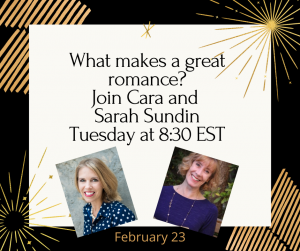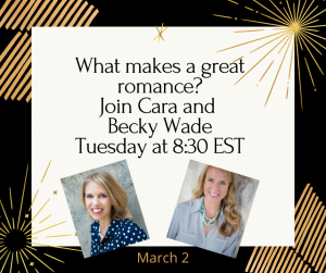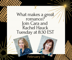 You can click on the following links if you want to sign up for an event so you get reminders from Facebook: Rachel HauckSarah Sundin, and Becky Wade. If you’d like to check out the earlier chats, there are links below!