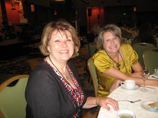Then this is a photo of me with writing pal Tina Forkner. One of the best parts of conference is connecting with friends I usually see at conference if at all. Tina is an amazing writer and her personality is so fun! Her daughter is a year older than Abigail and a level six in gymnastics so we had fun comparing notes.